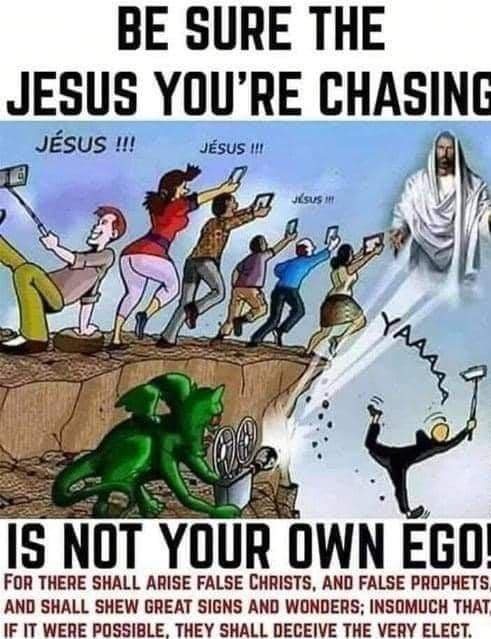 In this first meme, the statement reads: Be sure the Jesus you’re chasing is not your own ego. The idea behind this is that people create who Jesus is in their own mind. We’re not just talking about physical appearance but also spiritual appearance; what he stands for in the religious world.